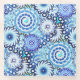 Motif tourbillon fractal dans les tons bleu pâle à bleu marine, accentué de dessous de verre en verre blanc