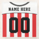 Facile à éditer soccer / football / sport jersey de boisson coaster, utilisez simplement les boîtes à droite de l'image pour insérer votre propre choix de nom et de numéro. Ce design de jersey a des rayures rouges verticales et des garnitures noires. La couleur arrière - plan peut être changée, il suffit de cliquer sur "PERSONNALISER". Cadeaux de maillot de sport personnalisés uniques pour les amateurs de sport et les joueurs de votre vie!