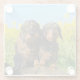 Le sanglier deux adorable a coloré les chiens d'une chevelure de teckel de fil côte à côte devant les fleurs fleurissantes jaunes de viol. Une photo drôle mignonne de chienchien prise par Katho Menden. Ces dessous de verre en verre sont une idée de cadeau pour des amoureux de les chiens. http://www.zazzle.com/kathom_photo