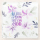 Un dessous de verre en verre inspiré par les écritures représente un magnifique jardin violet d'aquarelle avec des fleurs simples et des feuilles. Il présente la Bible Verse Psaume 46:10 "Soyez calme et sachez que je suis Dieu." *