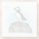 Art numérique tiré à la main Puffin debout sur un rocher avec arrière - plan bleu.