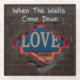 Cette conception capture une métaphore puissante pour révéler une vérité cachée. Il présente un mur patiné en brique avec une ouverture déchiquetée, à travers laquelle le mot "LOVE" est partiellement visible et brillant par une lumière chaude et rouge. L'expression "Quand les murs tombent" est écrite dans un style de graffiti clair sur la brique, symbolisant le moment où nous choisissons de révéler ce qui a été caché.