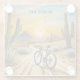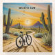 coucher de soleil tableau d'un vélo dans le désert entouré de cactus