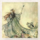 Arthur Rackham était l'un des principaux illustrateurs de l'"âge d'or" de l'illustration littéraire. Ses riches aquarelles sont quelques-unes des images les plus populaires de contes de fées et de folklore. Ses illustrations d'imaginaire étaient principalement basées sur des dessins au stylo robustes et à l'encre indienne associés à une utilisation subtile de l'aquarelle. Cette image s'appelle "Reine des fées".