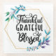 Heureux, reconnaissants et bénis, ce design chrétien présente une belle couronne florale bleue avec un texte disant : "Merci, gracieux et béni".