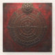 Une rose des vents ornée brille en or sur un fond cramoisi profond, entourée de symboles ésotériques et d'inscriptions cryptiques.