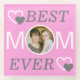Rose Meilleure Maman Jamais Personnalisé Fête des Mères Photo Dessous de verre en verre. Design rose, blanc et gris propre et simple. Ajoutez votre jolie photo de famille pour faire un saké personnel pour le bureau.