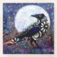 Dessous-de-verre En Verre Whimsical Raven Lune Floral Noir Blanc Bleu