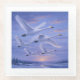 their white wings softly illuminated by the fading light.