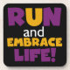 Si vous aimez courir, courir 5Ks, 10Ks, demi-marathons ou marathons, vous adorerez ce texte coloré en violet et jaune qui lit Run and Embrace Life! Courez et Embrace Vie T-shirts, sweat - shirts à capuche, magnets, boutons, cartes, autocollants, porte - clés, et beaucoup d'autres articles pour les coureurs qui aiment un design de course brillant et coloré!