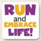 Si vous aimez courir, courir 5Ks, 10Ks, demi-marathons ou marathons, vous adorerez ce texte coloré en violet et jaune qui lit Run and Embrace Life! Courez et Embrace Vie T-shirts, sweat - shirts à capuche, magnets, boutons, cartes, autocollants, porte - clés, et beaucoup d'autres articles pour les coureurs qui aiment un design de course brillant et coloré!