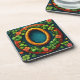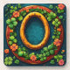 Ovale doré fer à cheval et trèfle orné de fleurs vibrantes et de feuilles vertes luxuriantes. Le fond est sombre, ce qui met en valeur la flore colorée et donne une atmosphère fantaisiste et inspirée de la nature à la composition.