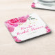 Joli dessous de verre de fête de mariage avec des arrangements floraux rose vif. Parfait pour une fête de mariage. Les mots peuvent être modifiés pour s'adapter à vos propres détails ou exigences