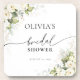 Dessous de verre Fête de mariage Roses blanches de feuillage. Cette invitation de Fête de mariage élégante et stylée présente de superbes roses blanches de feuillage peintes à la main à l'aquarelle. Trouvez des articles assortis dans la Collection de Roses blanches de feuillage à l'aquarelle.