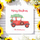 Dessous de verre Joyeux Noël avec une vieille voiture rouge portant un sapin de Noël aquarelle. Découvrez notre collection de magasin ci-dessous pour plus de produits avec ce design.