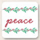 Ce décor paisible est composé de feuilles et de baies d'hiver en haut et en bas et du mot "peace" au centre en lettres bordeaux sur un arrière - plan blanc.