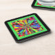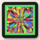 Une fleur abstraite vibrante dans les tons bleu, violet, rouge, corail, jaune, or, vert et plus !
