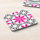 Super mignon rose chaud, noir et blanc motif de fleur kaléidoscopique sur un joli ensemble de dessous de verre.