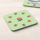 Éplucher des fleurs roses sur des Dessous de verre arrière - plans en plastique vert clair.
