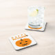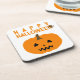 A Halloween hard plastic coaster with a pumkin and a 'Happy Halloween' text on white. Customize the white background among other options.