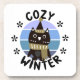 Une chouette chouette portant une écharpe d'hiver et les grands mots heureux hiver. Pour tous ceux qui aiment les vibes d'hiver et les animaux mignons.