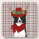Dessous de verre amusant pour la personne qui aime leur Collie Frontière. Celui-ci porte un bandanna rouge, des bois et un casquette cowboy assorti décoré de saint pour une approche stylisée de la saison des fêtes, et se tient debout contre un arrière - plan plaid à thème occidental pour décorer votre maison ou bureau avec la joie des amoureux saisonniers.