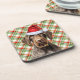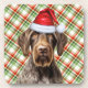 Dessous de verre amusant pour la personne qui aime son PRG. Ce Pointeur À poils durs allemand porte un chapeau de Père Noël pour une approche élégante de la saison des Fêtes, et se tient debout contre un arrière - plan plaid festif rouge et vert pour décorer votre maison ou bureau avec la joie des amoureux saisonniers.