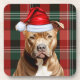 Dessous de verre amusant pour la personne qui aime son Pitbull. Celui-ci porte un chapeau de Père Noël pour une approche élégante de la saison des Fêtes, et se tient debout contre un arrière - plan festif rouge et vert plaid pour décorer votre maison ou bureau avec la joie saisonnière amoureux des animaux de compagnie.