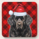 Dessous de verre amusant pour la personne qui aime son Terre-Neuve. Celui-ci porte un chapeau de Père Noël pour une approche élégante de la saison des Fêtes, et se tient debout contre un arrière - plan festif de buffle rouge plaid pour décorer votre maison ou bureau avec la joie saisonnière amoureux des animaux de compagnie.