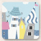Joli art numérique pastel de grands bâtiments contre un ciel d'été bleu pastel.