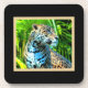Tiens, chéri, chéri. Rencontrez Nayla le jaguar magnifique aux yeux pointus et à la belle robe.Le jaguar est une grande espèce de félidés avec une robe marquée distinctement jaune pâle ou teintée, avec des taches qui se transforment en rosettes. Malheureusement, le jaguar est soumis au braconnage, à l'épuisement de son habitat et à d'autres défis pour son existence, de sorte que les scientifiques pensent que sa population est en déclin. Ce grimpeur d'arbre solitaire ressemble un peu à un léopard, mais les jaguars sont plus gros et vivent dans différentes régions que les léopards. Cette image est basée sur une photographie originale avec des effets numériques appliqués pour lui donner un effet légèrement texturé, comme un portrait à l'ancienne.