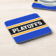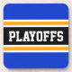 Ce design sportif et coloré présente du texte PLAYOFFS athlétique à l'intérieur d'une large bande noire surlignée avec des rayures blanches et jaunes contre des rayures bleues vives extérieures. Le texte et les couleurs de ce design peuvent être personnalisés.