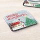 Dessous-de-verre Joyeuse église de Noël et arbre de Noël en neige