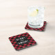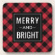 Le design élégant du dessous de verre de boisson de vacances comprend un motif rouge et noir à chèque en buffle plaid avec Joyeux et brillant design de typographie moderne en noir et blanc.