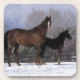 Dessous-de-verre Jument et poulain arabes dans la neige