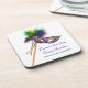 Ensemble de 6 dessous de verre en plastique à dos de liège, brillant, muni d'un magnifique masque satin violet, vert et or sur un bâton avec des plumes et des rubans coordonnés, et du sentiment "Laissez Les Bon Temps Rouler !" (Laissez le bon temps rouler !) en écriture violette en français. Voir le dessous de verre en papier et les serviettes correspondantes. Voir l'ensemble de la collection de Dessous de verre Mardi Gras dans le FOOD/BEV | section Dessous de verre.