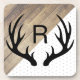 Silhouette de bois de cerfs noirs tendance et moderne encadrant votre lettre monographique personnalisée. Les dessous de verre sont également dotés d'un motif ludique plus panneaux.