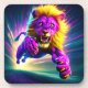 Ce dessous de verre a un lion rose dessus.