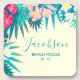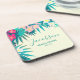 Maison de plage florale tropicale Nom de famille avec Année établie Dessous de verre de vacances d'été
