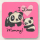 Un ours panda de maman et de bébé conçoivent avec un arrière - plan et un texte rose et des coeurs et un texte qui lit la maman d'amour d'I sur le T-shirts, combinaisons, tasses, cartes, autocollants, sacs, magnet, et un plus blancs.