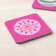 Dessous de verre dans un mandala à douze points motif dans les tons rose fuchsia, bordeaux, lavande et blanc sur un arrière - plan rose profond