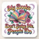 Un design rétro plein de vie et coloré présente un livre ouvert, des roses, des formes de croissant et des étoiles. Le texte en gras dit : "Mes livres ne me jugent pas, les gens le font." Ce design unique est disponible sur une large gamme de produits.