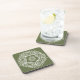 Ce mandala blanc est posé sur un arrière - plan de mousse foncée ou vert olive. Les couleurs sont harmonieuses et équilibrées. Partie de la collection Jarn Mandala.