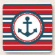 Design nautique avec décoration d'ancre en forme ronde sur arrière - plan rayé rouge, bleu et blanc