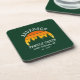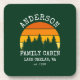 Pins Rustiques Été Rétro Coucher de soleil Nom de famille Cabine Forest Dessous de verre verts. Personnalisez avec votre nom de famille, votre lieu, votre année ou votre date et plus.