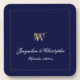 Cadeau de mariage/Jeune marié Ensemble de 6 sous-verres personnalisés avec les initiales de monogramme modernes, les noms de la mariée et du marié, chic bleu marine. Écriture classique utilisée pour l'initiale du nom de famille monogrammé, les noms de la mariée et du marié et la date du mariage sur un fond bleu marine chic. Le cadeau idéal pour les jeunes mariés, les couples fiancés, un cadeau de pendaison de crémaillère, ou beau pour votre propre maison. Cliquez sur personnaliser ce modèle pour le personnaliser avec l'initiale du nom de famille monogramme, les noms de la mariée et du marié, et la date du mariage rapidement et facilement. Cadeau de mariage/Jeune marié Sous-verre personnalisé chic bleu avec monogramme, fait partie de la collection Cadeaux de mariage & Jeunes mariés de cette boutique, qui propose une belle gamme de cadeaux de mariage uniques et personnalisés indispensables. Serviette de bar ou de cuisine monogrammée assortie, plaid en fleece cosy assorti et de nombreux autres articles de la collection Cadeaux de mariage & Jeunes mariés dans cette boutique. Garantie de remboursement de 30 jours. Expédition