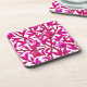 Dessous de verre dans une tapisserie de William Morris Art Nouveau motif d'oiseaux exotiques dans un grenadier, avec feuilles fuchsia rose et violet, oiseaux et fruits dans fuchsia, bleu violet et saphir, et un arrière - plan blanc