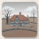 Colourful artwork of an old timber-framed farmhouse in the English countryside, with an old windmill in the background, and some crows who have come to visit. Perfect for anyone who loves folk art.