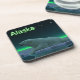 Un moment de paix dans la longue nuit arctique. Un Ours Polaire repose au bord d'une zone ouverte dans la glace de la meule.Les aurores nordiques brillent au loin; les étoiles brillantes scintillent au-dessus. Le texte "Alaska" apparaît en vert et blanc brillant. Les ours polaires sont en danger. Combien de temps encore des scènes comme celle-ci pourront-elles se produire ? S'il vous plaît aidez à sauver les ours polaires de l'extinction.