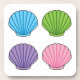 L'illustration de Four pastel colorful seashells. This pack of seashells four different beautiful colors which are blue, pink, green and violet. This design is a good gift idea for nature lovers, ocean lovers, seafood lovers and shell lovers.